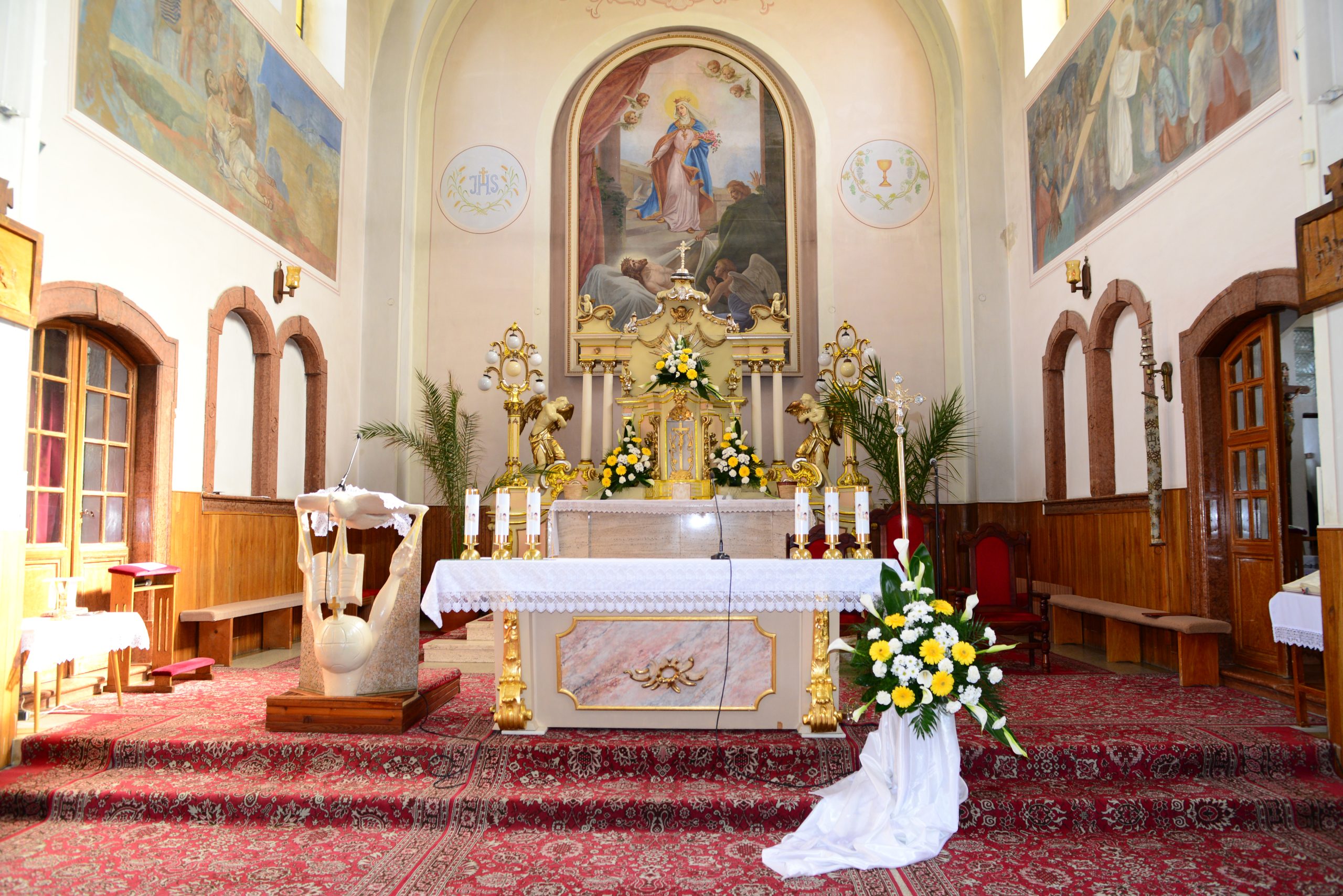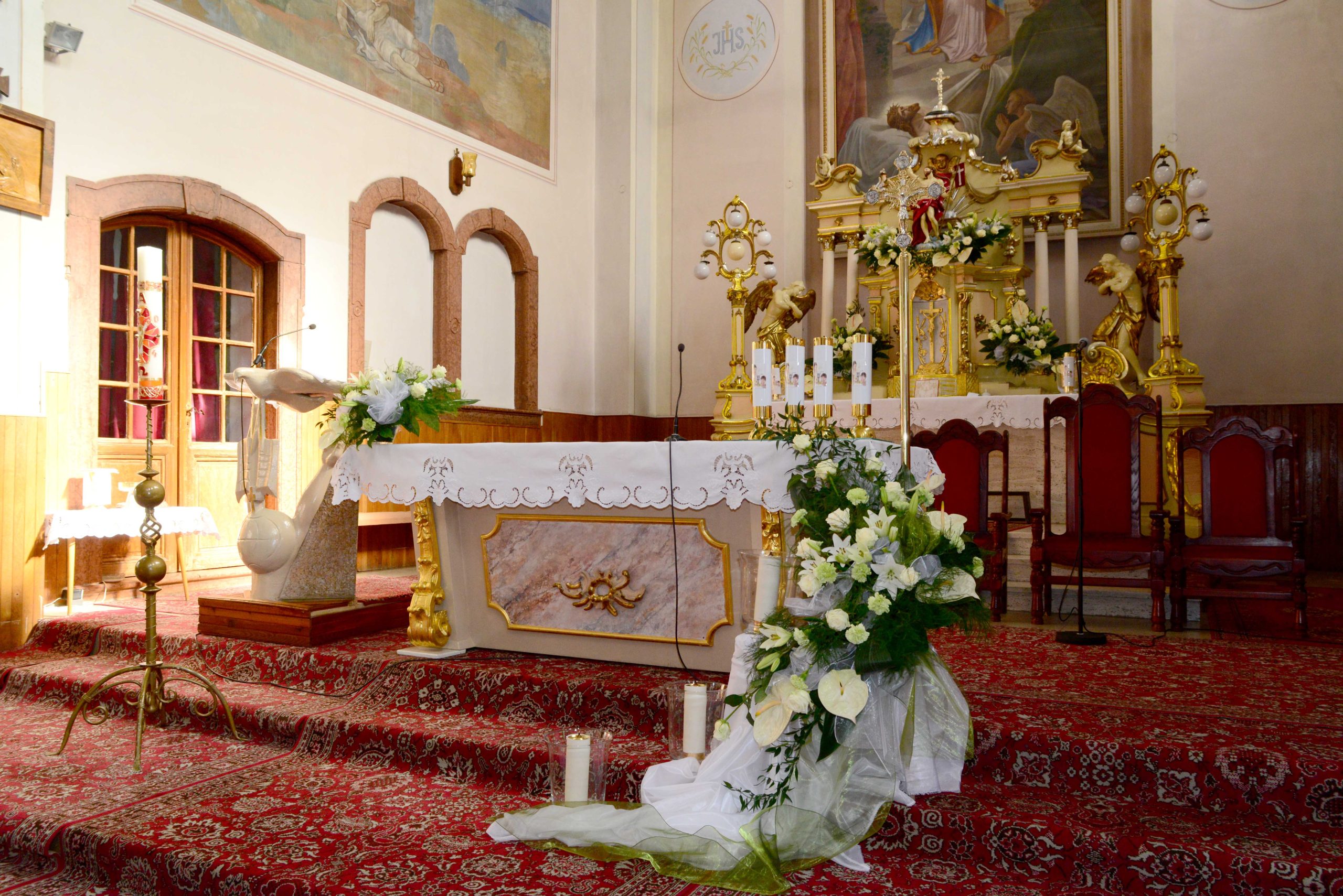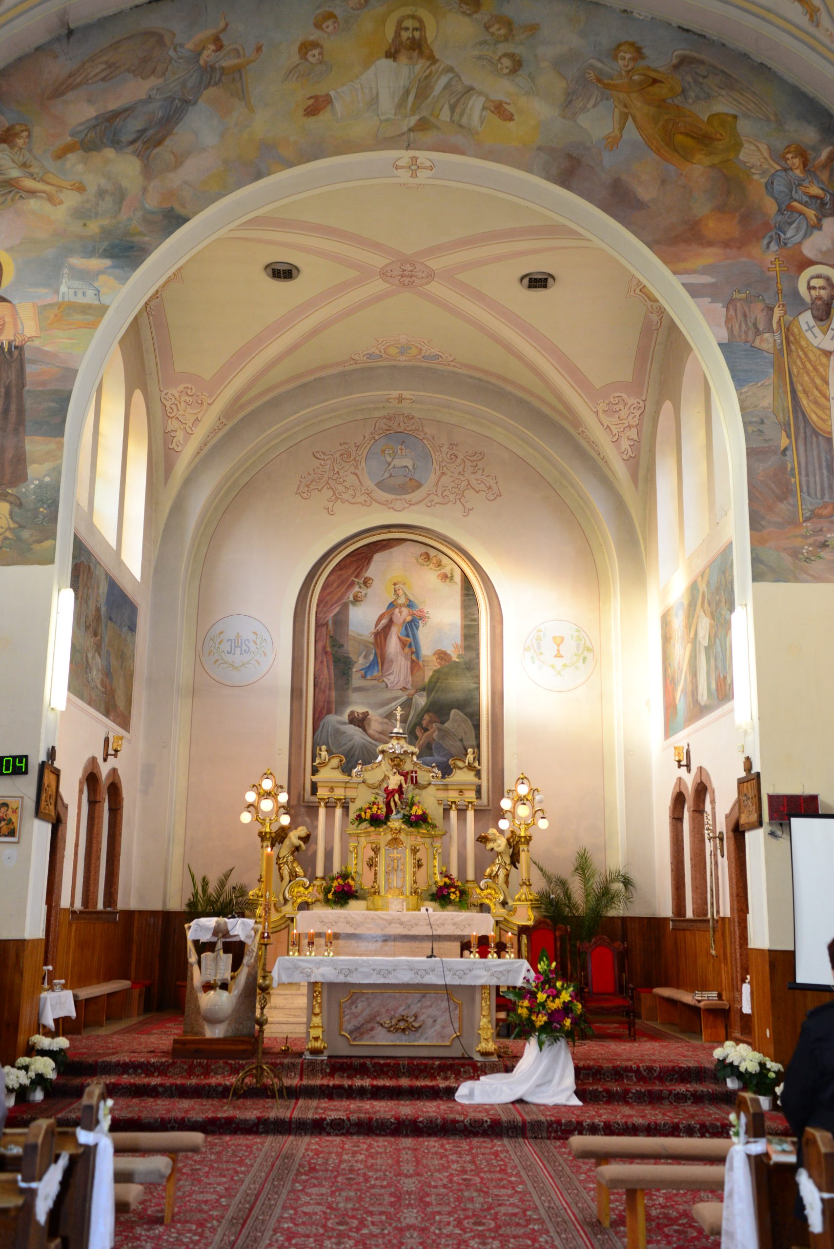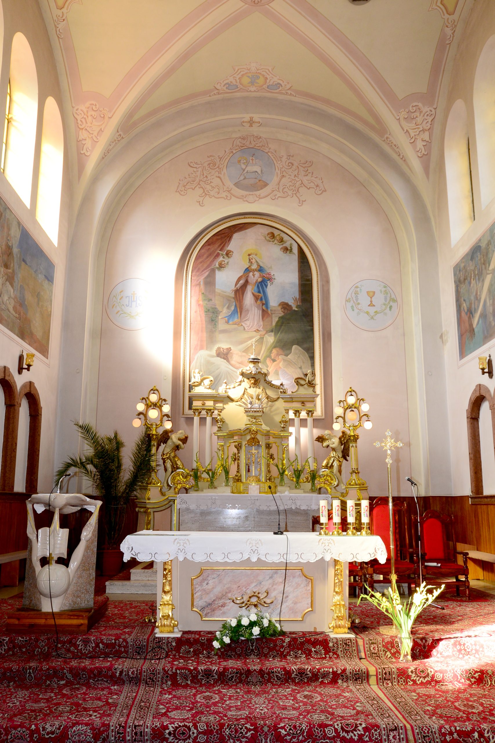 V kostole sú tri oltáre. Hlavný oltár tvorí závesný obraz sv. Alžbety z 19. stor. Kazateľnica je rokoková z konca 18. stor. Krstiteľnica je z pol. 19. stor. V pravej lodi je umiestnený oltár Ukrižovaného s Pannou Máriou, kde býva počas Veľkej noci Boží hrob. V ľavej lodi je umiestnený oltár zasvätený Sedembolestnej Panne Márii.