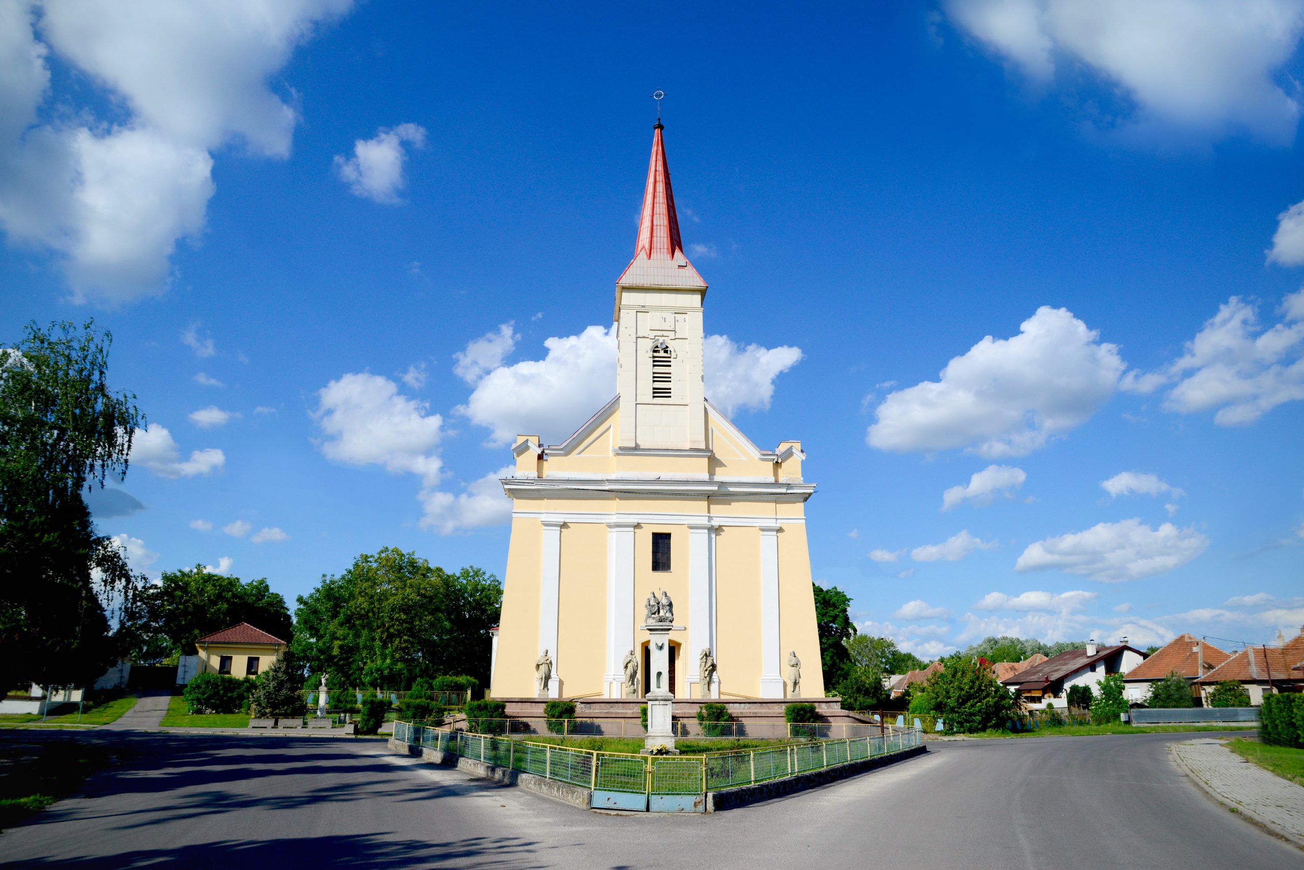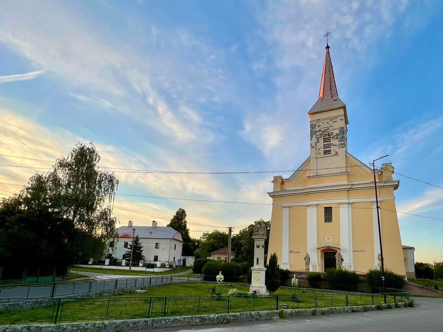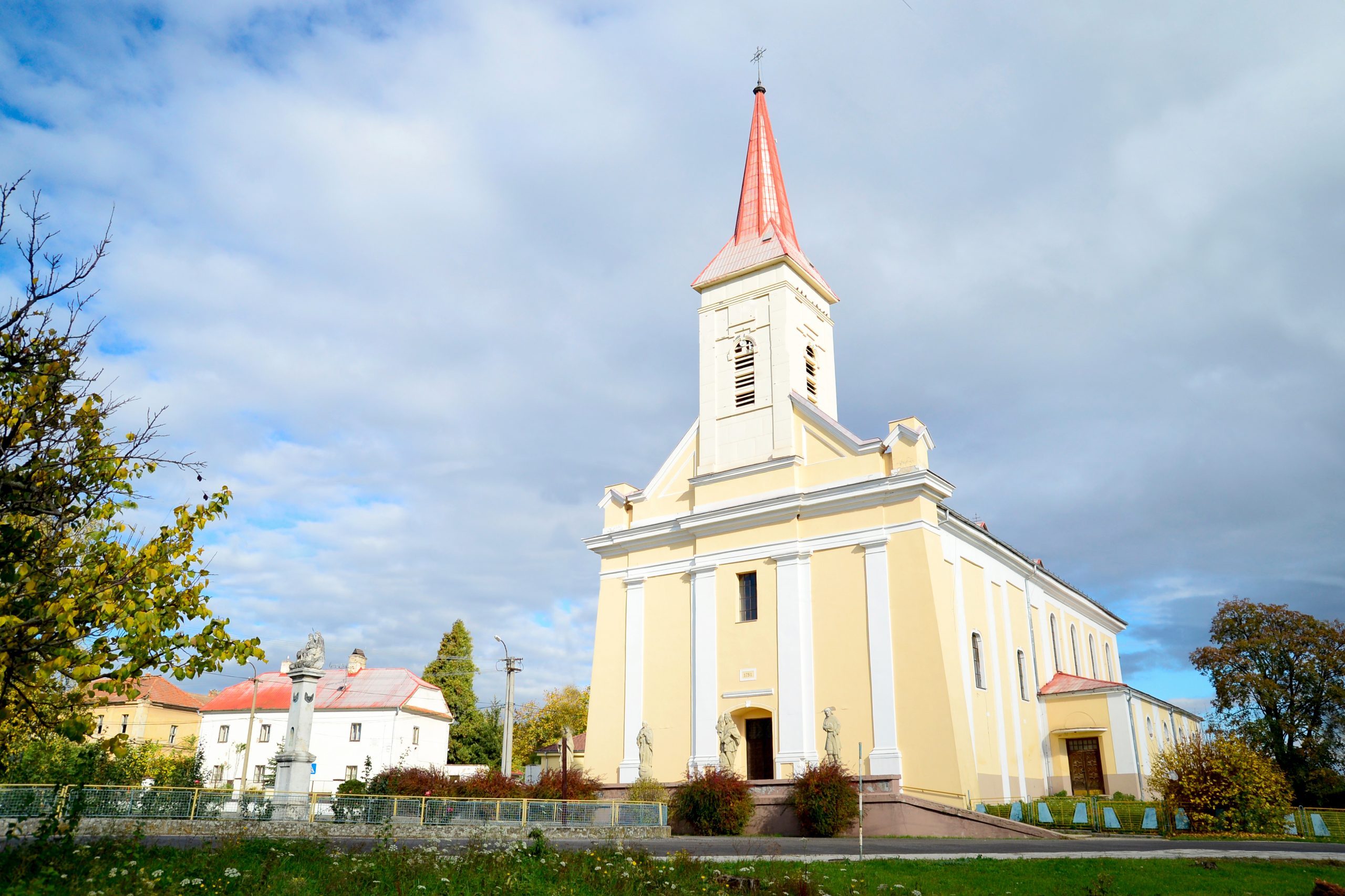 Je to neskorobaroková stavba. Dal ho postaviť komjatický zemepán Anton Grasalkovič I. v rokoch 1751 – 1755 na mieste staršieho stredovekého kostola. Kostol bol vystavaný od základu z pevného stavebného materiálu a A. Grasalkovič sa postaral o jeho vnútornú i vonkajšiu výzdobu. Barinaté podložie však spôsobilo porušenie pevného základu a zemetrasenie v roku 1783 pukliny a trhliny, poškodenie klenby a veže, v dôsledku čoho hrozilo jeho zrútenie. Od roku 1804 boli na kostole robené opravy a prestavby. Zložená bola murovaná veža, v roku 1831 bola vymenená strecha za šindľovú, postavená bola drevená veža a steny podmurované. V roku 1845 bol kostol pre ohrozenie života ľudí zatvorený. V roku 1846 boli urobené rozsiahle opravy kostola. Iniciovala ich grófka Leopoldína Grasalkovičová. Vystavaná bola nová drevená klenba, ktorá bola stiahnutá železnými tiahlami a precíznejšie umelecky vypracovaná. Pod chór boli položené stĺpy a zvonka sa urobil vchod. V roku 1937 bol kostol rozšírený o dve bočné lode. Interiér kostola bol zariadený novými lavicami z červeného smreka, spovednicami a rámami na krížovú cestu. Ďalšie opravy vojnou zničeného kostola sa realizovali v roku 1948. Neskôr boli zrealizované opravy zvonka, vymenená strecha za plechovú, natretá veža, fasáda a bol vymaľovaný zvnútra.